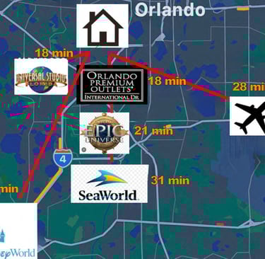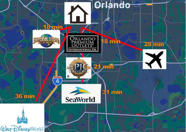 Bus stop right in front of the complex — easy & affordable to Disney, Universal Studios, Sea World, Orlando Premium Outlets and Airport.